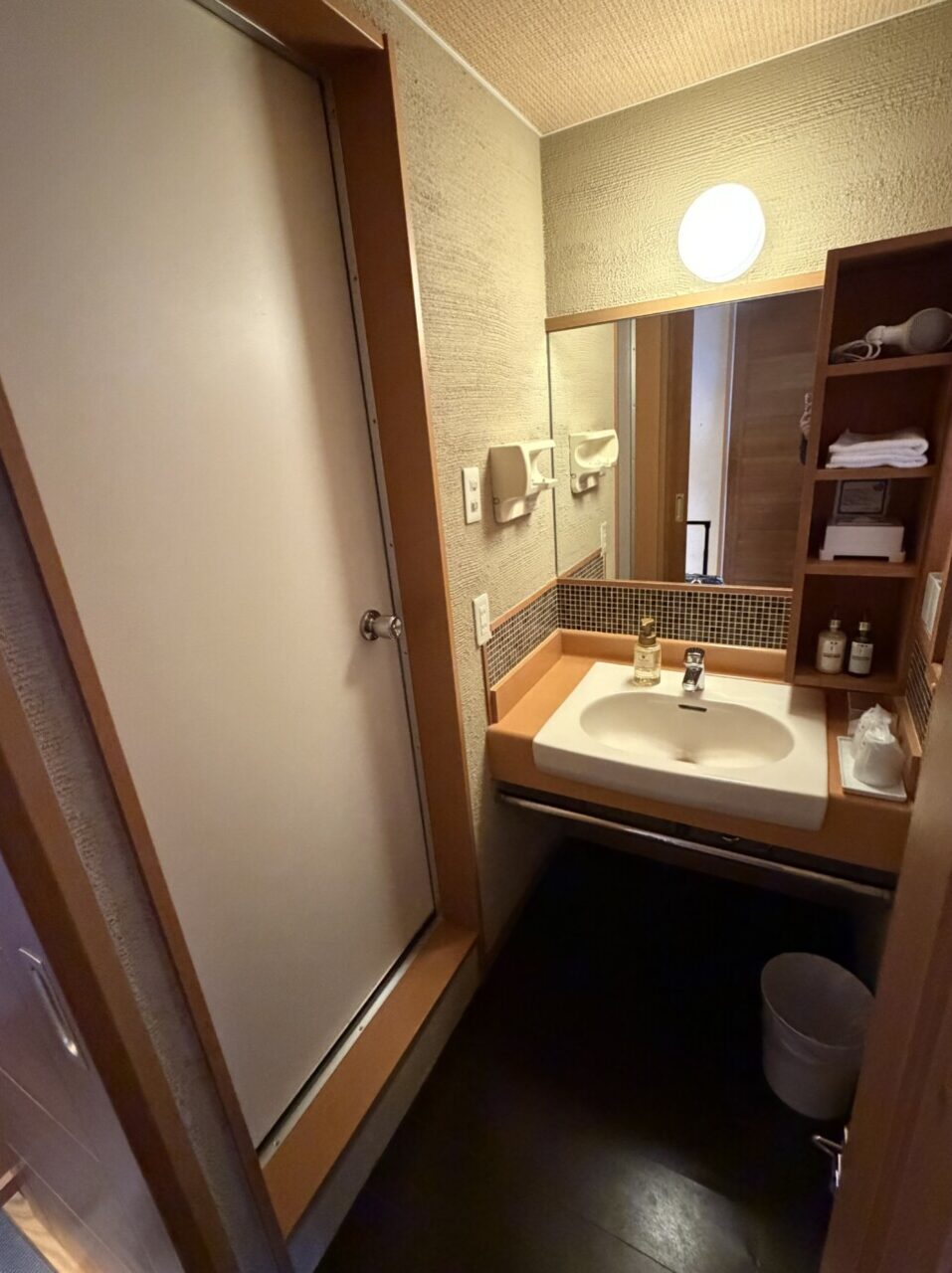 洗面台も綺麗。化粧水と乳液もありました。