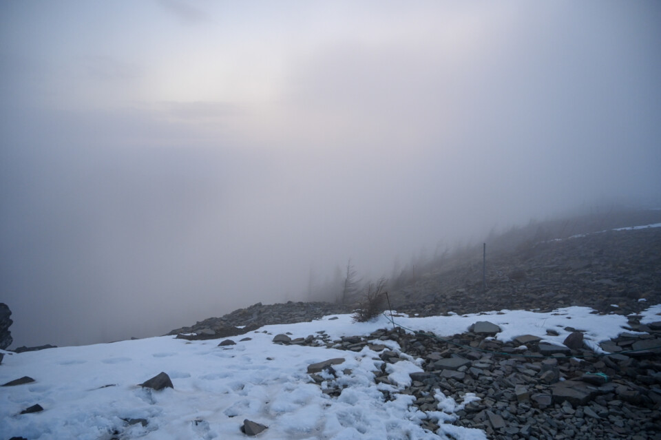 晴れてたら星を撮影しようと思って一応4時に一回起きてみました。昨日の夜より雲も霧も出ていて、10m先も見えないくらい。